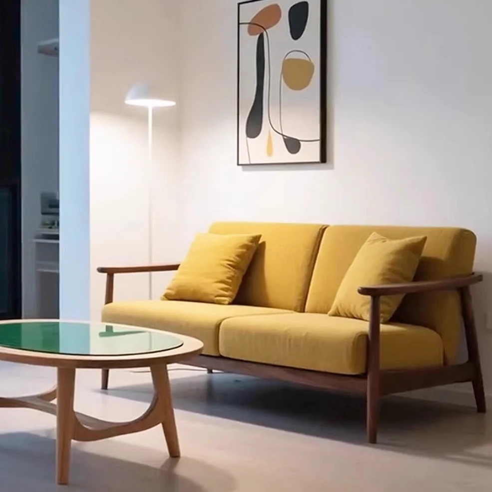 2025年新作!新中式実木ソファ - モダンシンプルな布製ソファと古風なウォールナットソファの完璧な融合。あなたの家に洗練された美しさを与え、快適なひとときを提供します!