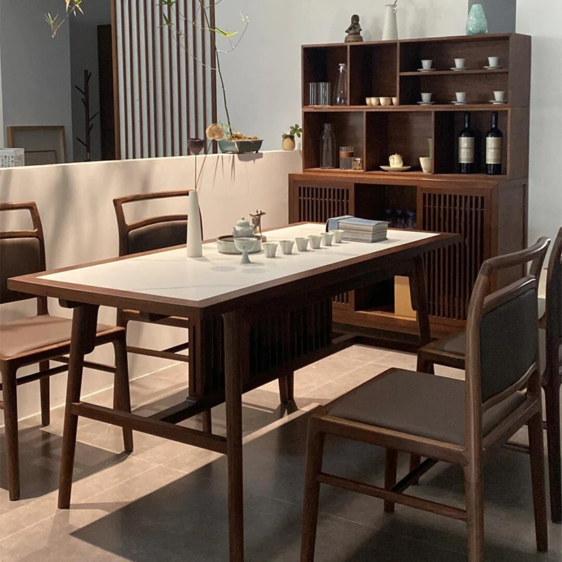 2025年新作 高級感溢れる新中式岩板茶卓 家庭用 軽奢でモダンなデザイン 天然木製の贅沢な茶道具で、心安らぐひとときをお楽しみください。