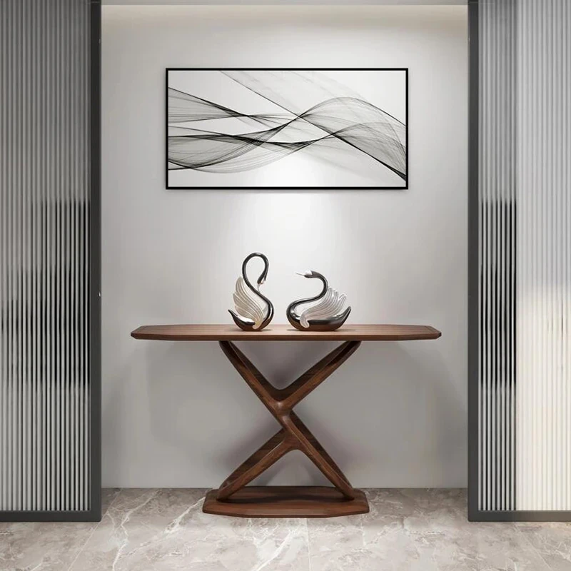 新中式玄関テーブル2025年新作!現代的でシンプルなデザイン、実木のウォールナット製。リビングやエントランスにぴったりのスタイリッシュな玄関テーブルで、おしゃれな空間を演出します!