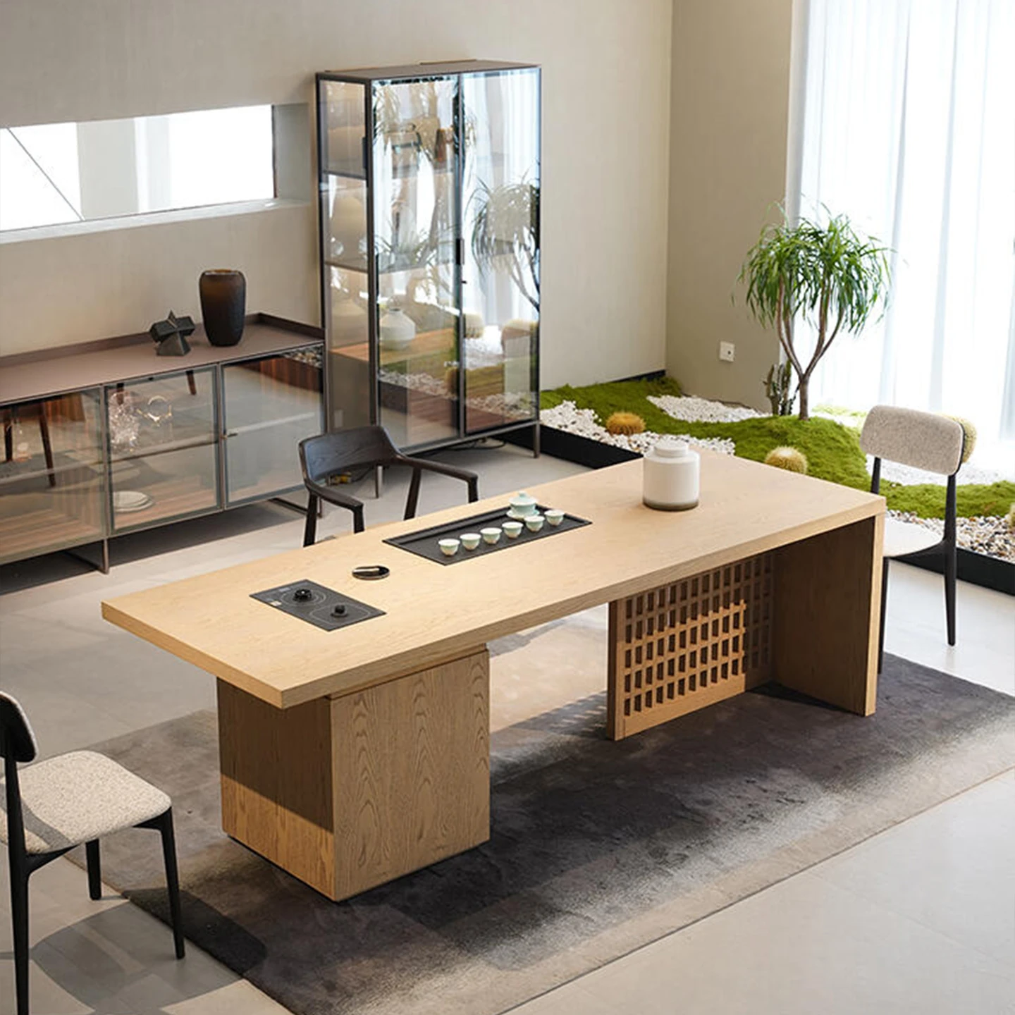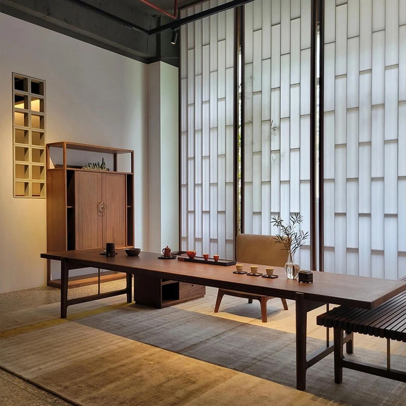 新中式スタイルの高級茶室用テーブル - モダンな禅の雰囲気を演出するシンプルなウォールナット製ティーテーブル。リビングに最適な家用デザインで、心を落ち着けるひとときをお楽しみください。