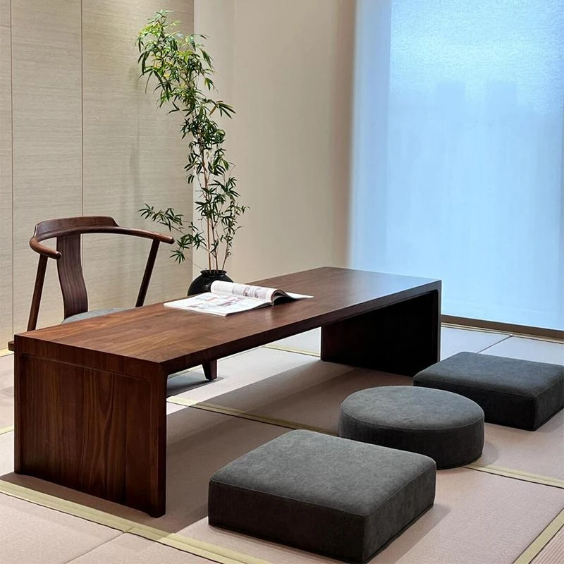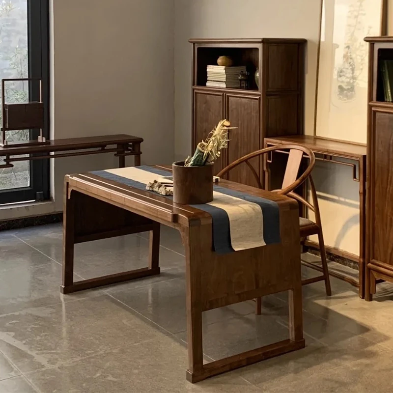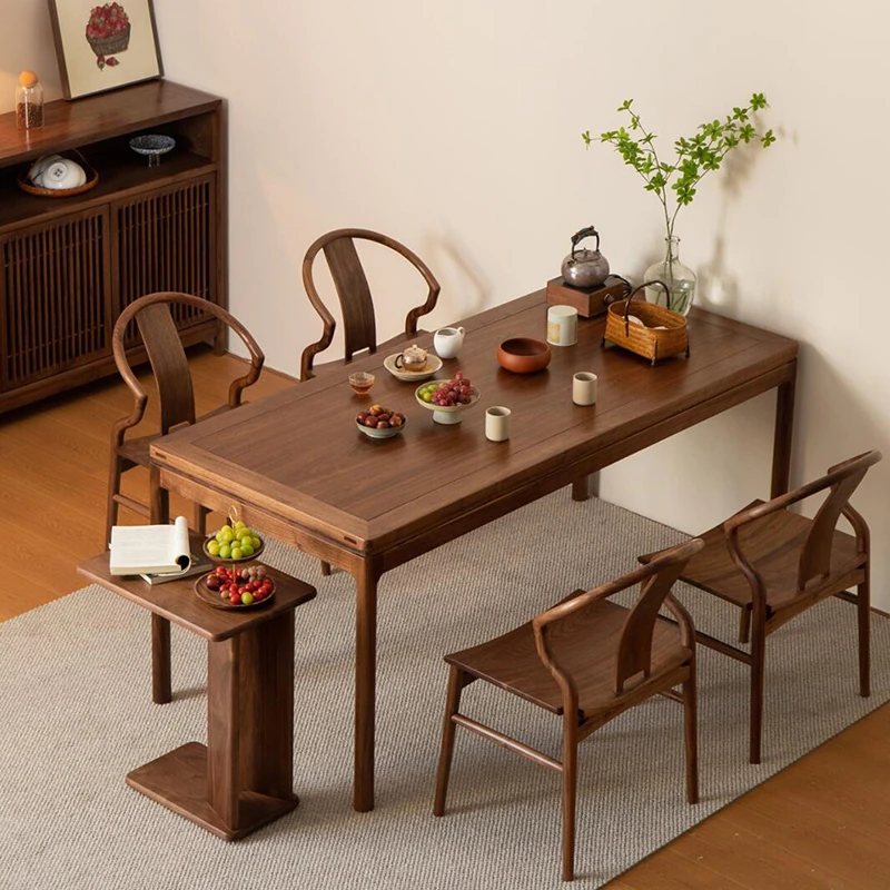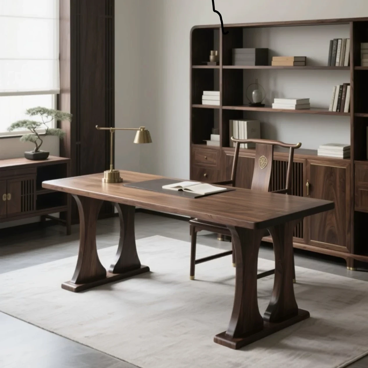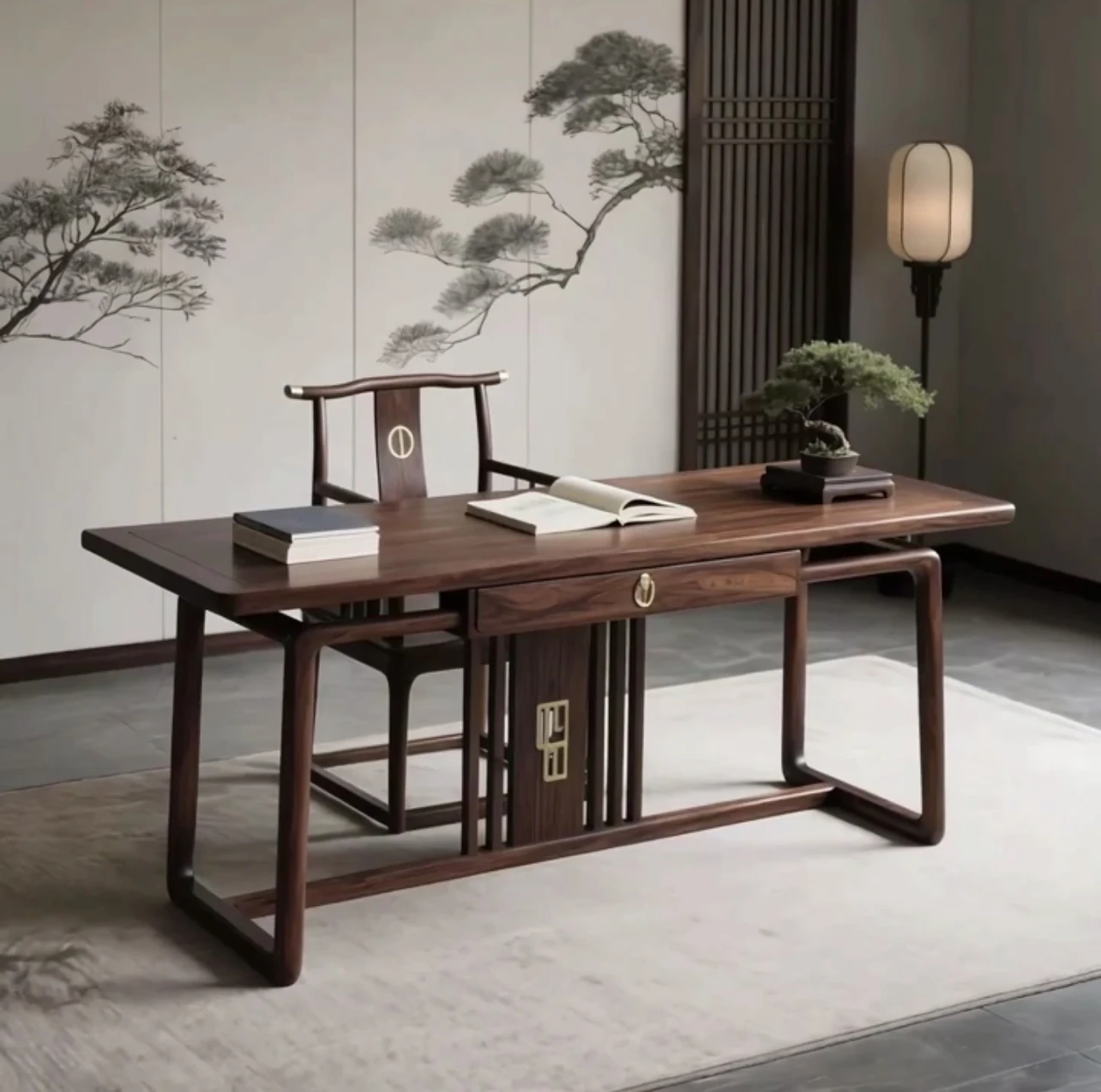 2025年新作!高級感あふれるウォールナット材のシンプルな書斎兼用テーブル。書斎にもリビングにもぴったりなスタイリッシュなデザインで、乾燥したお茶を楽しむひとときを演出します。