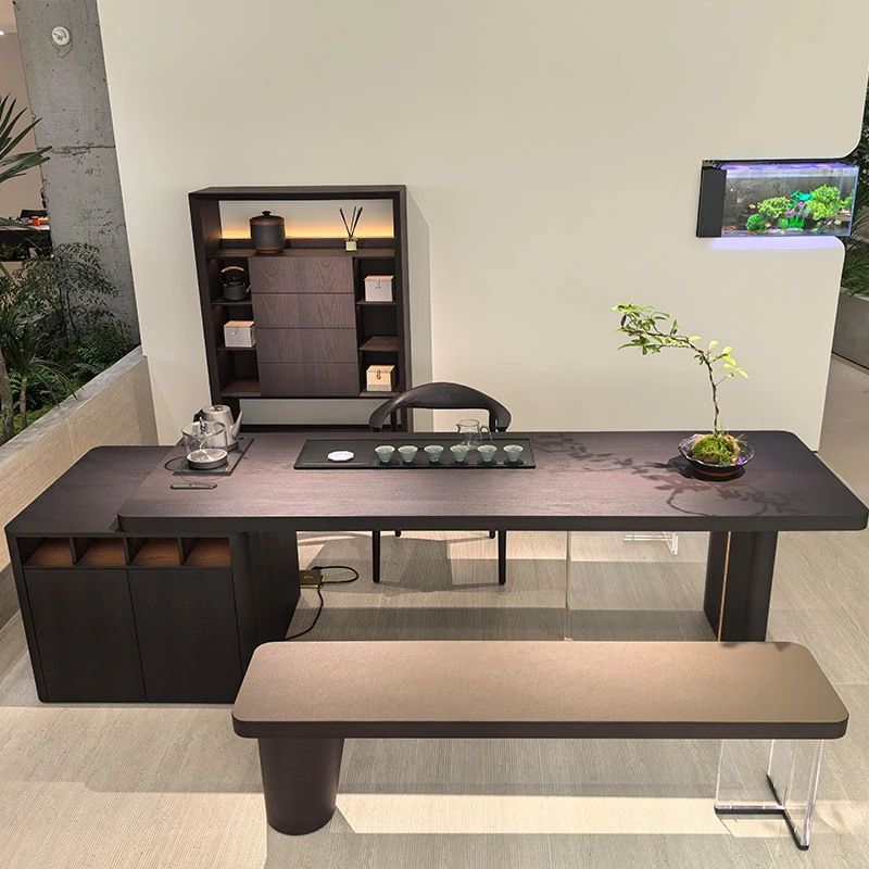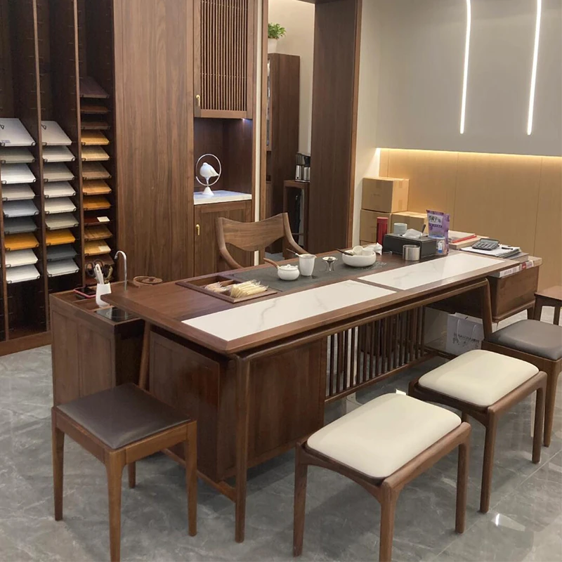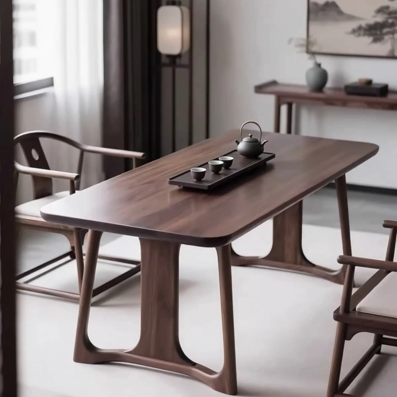 新中式スタイルのシンプルで洗練された干泡台デスク兼用のティーテーブル - 2025年新作、ウォールナット材使用の高級リビング用ティーテーブル!おしゃれで機能的、あなたの空間を格上げするアイテムです。