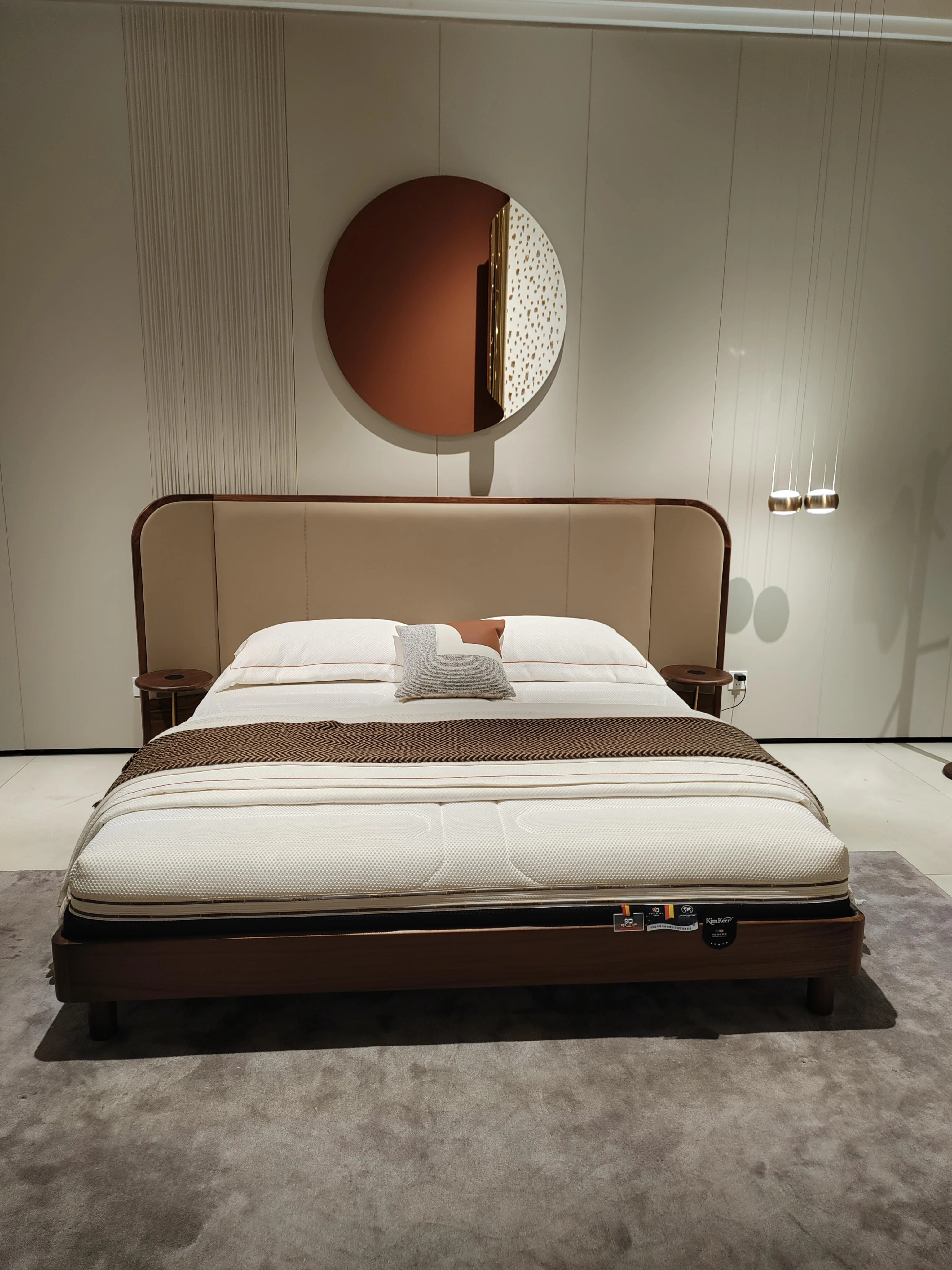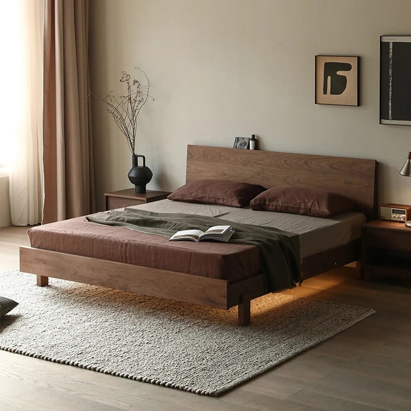 新中式デザインの無垢材ベッド - 2025年新作、モダンでシンプルな主寝室用ダブルベッド、1.8メートルのクルミ材ソフトパックベッド。おしゃれで快適な寝空間を演出し、あなたの生活を格上げします!