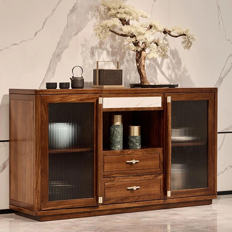 新中式スタイルの高級ウォルナット製サイドボード - モダンなエントランス収納と優雅なダイニングスペースを演出!おしゃれで実用的な収納ソリューションを手に入れましょう。