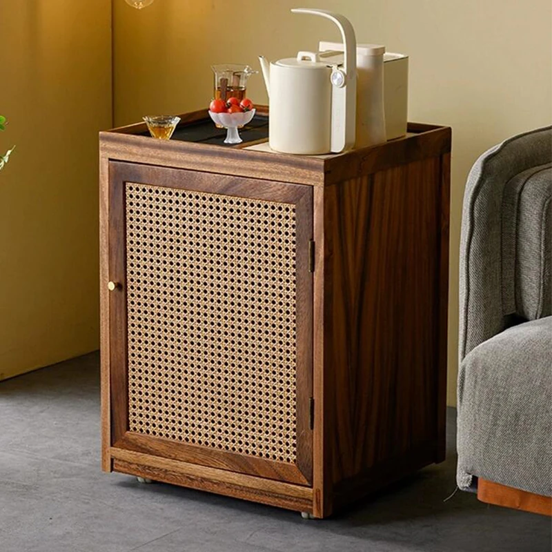 新中式モダン移動式ティーカート2025年新作!高級感溢れるウォールナット製、リビングにぴったりのスタイリッシュなティーテーブルサイドキャビネット。おしゃれで実用的な空間作りを実現!