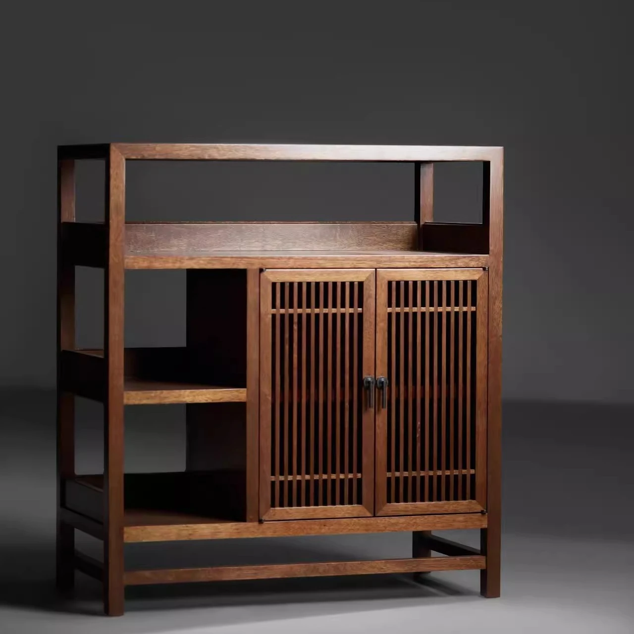 新中式デザインの無垢材サイドボード2025年新作!シンプルでスタイリッシュなリビング収納キャビネット。ウォールナット材使用、おしゃれなティーキャビネットとしても最適です。あなたの家にぴったりの収納ソリューション!