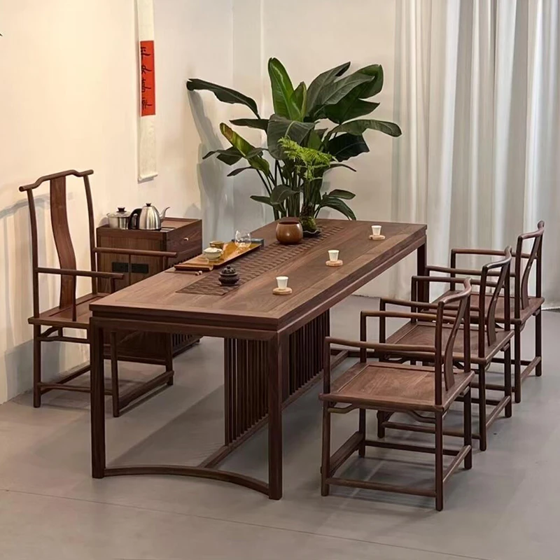 2025新作!中古風の無垢材使用モダンシンプルリビング用茶卓 - ニュー中式くるみ材茶台、洗練されたデザインでお部屋を引き立てます!