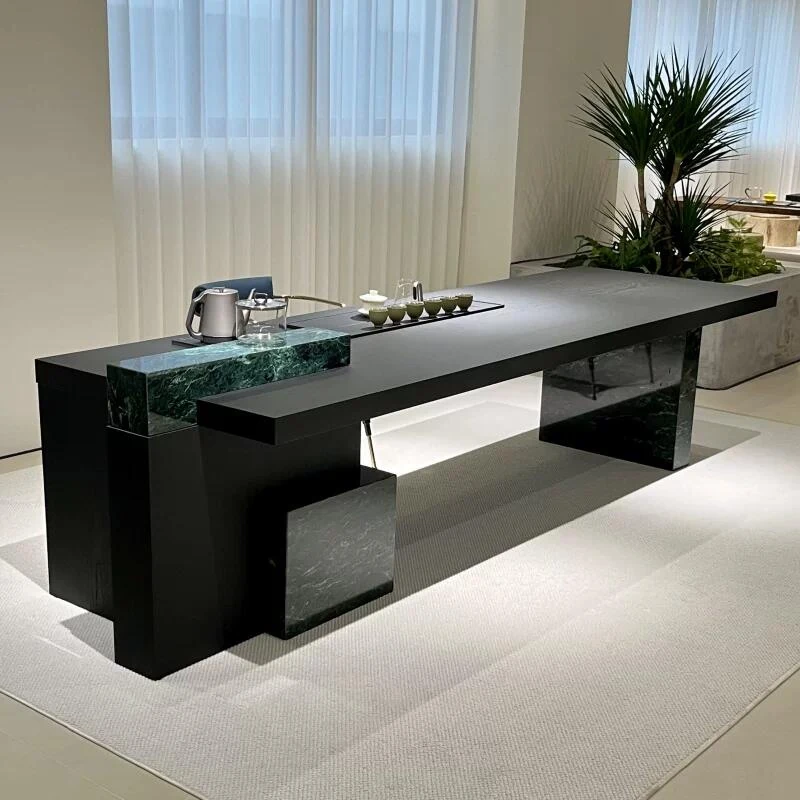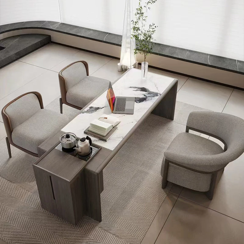 新中式の無垢材岩板茶卓&椅子セット - モダンでシンプルなデザイン、2025年新作!オフィスやリビングにぴったりのラグジュアリーな茶台で、くつろぎのひとときを演出します。