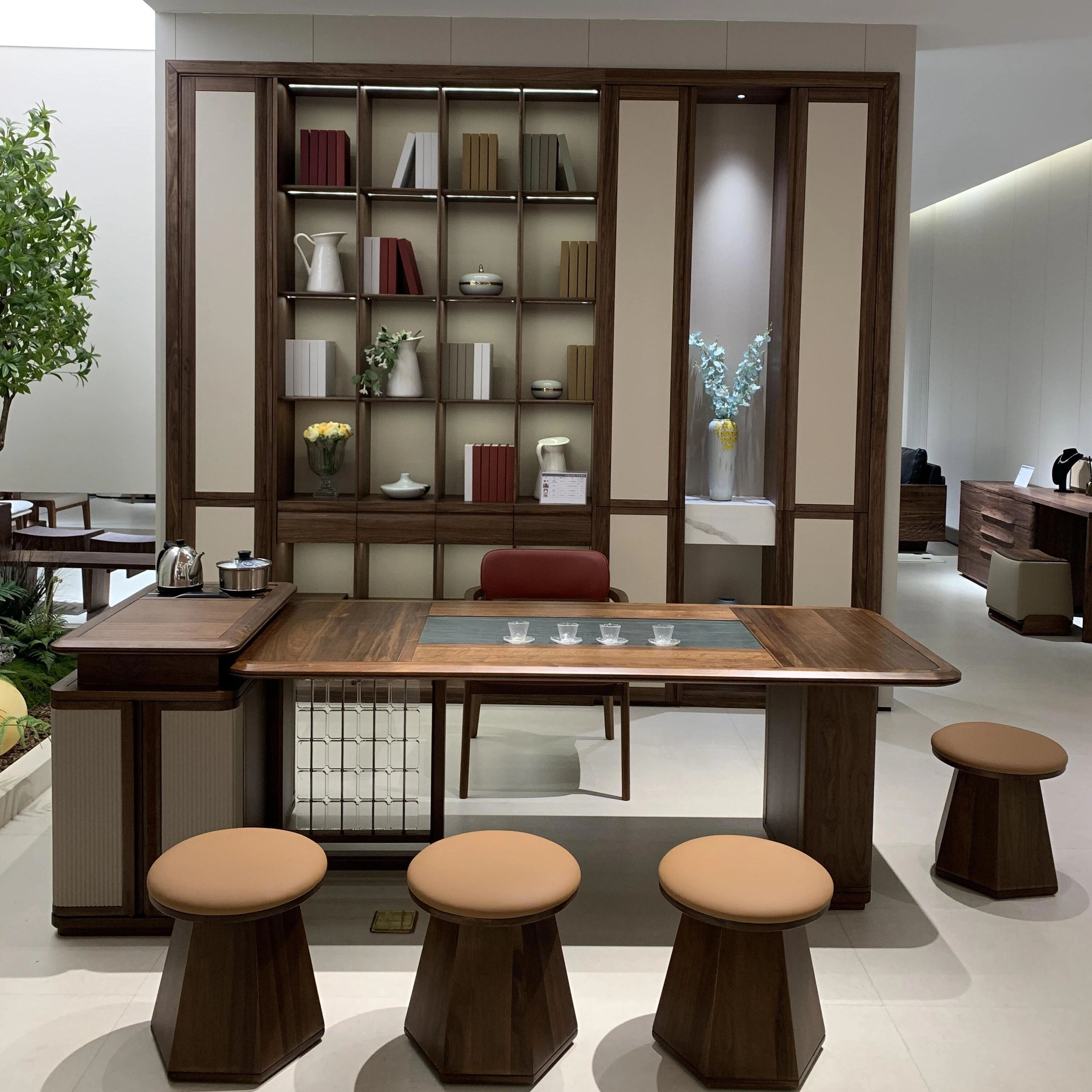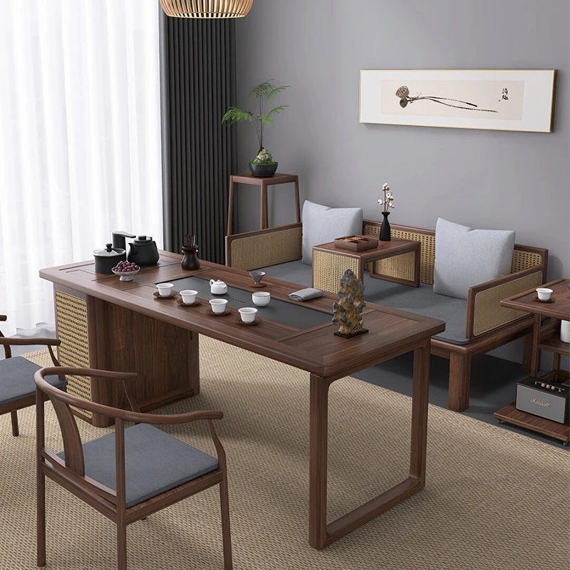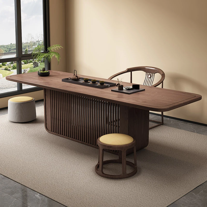 新中式2025年最新款!高端胡桃木書斎兼用デスク|シンプルで洗練されたデザインの茶卓、リビングにも最適!おしゃれな空間を演出する一品!
